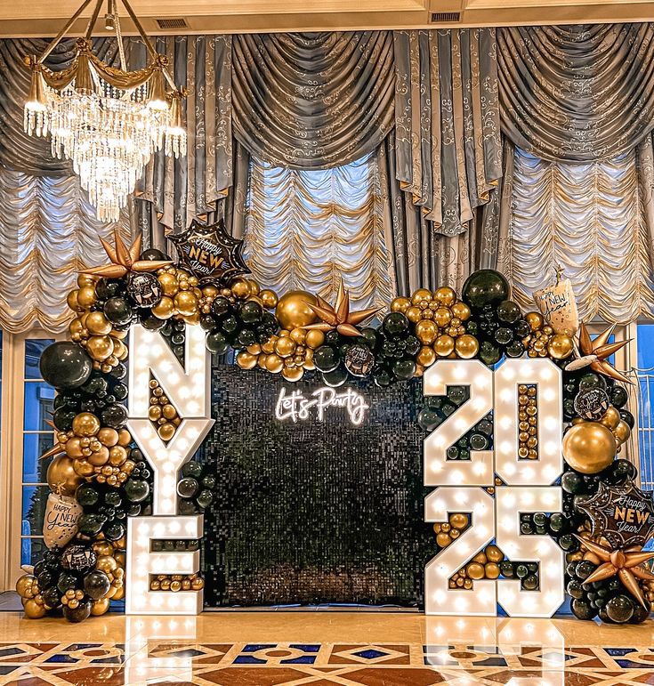 Warna hitam dan emas selalu jadi favorit untuk acara pergantian tahun karena memberikan nuansa mewah dan glamor.